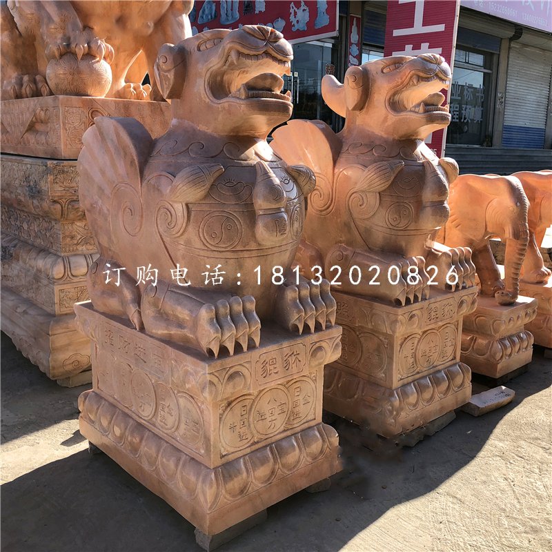 4.經(jīng)歷時(shí)代的演變,貔貅的造型也是比較統(tǒng)一。如有短翼、雙角、卷尾、鬃須常與前胸或背脊連在一起,突眼、長(zhǎng)獠牙。現(xiàn)在常見(jiàn)到的貔貅多是獨(dú)角、長(zhǎng)尾巴。