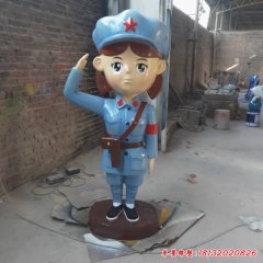 玻璃鋼卡通敬禮八路軍雕塑