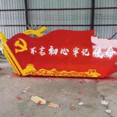 不銹鋼不忘初心牢記使命黨旗雕塑