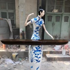 玻璃鋼演奏樂器的古代美女雕塑