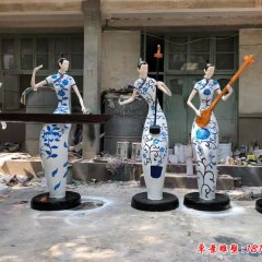 玻璃鋼梅蘭竹菊演奏樂器人物雕塑