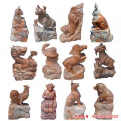 十二生肖石雕,晚霞紅十二生肖雕塑