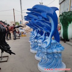 玻璃鋼海浪海豚雕塑