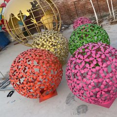 不銹鋼彩色花朵鏤空球雕塑