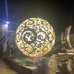 不銹鋼燈光花朵鏤空球雕塑
