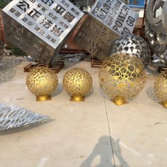不銹鋼金色鏤空球雕塑