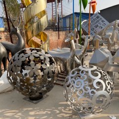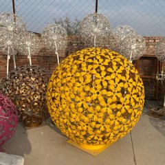 不銹鋼花朵圖案鏤空球雕塑