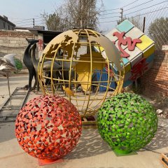 彩色不銹鋼鏤空球雕塑