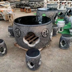 福字浮雕圓桌凳石雕