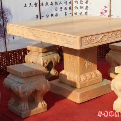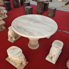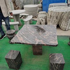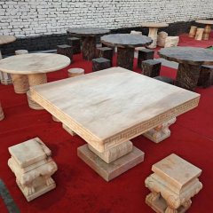 晚霞紅方桌圓凳石雕