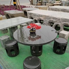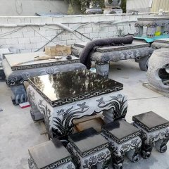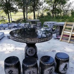 中國(guó)黑石材圓桌凳雕塑