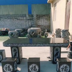 青石長(zhǎng)條桌凳石雕