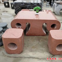 晚霞紅方形石桌石凳雕塑
