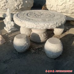 漢白玉龍浮雕圓桌凳