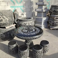 福祿壽喜浮雕仿古石桌凳
