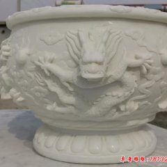 龍浮雕水缸雕塑,漢白玉石雕水缸