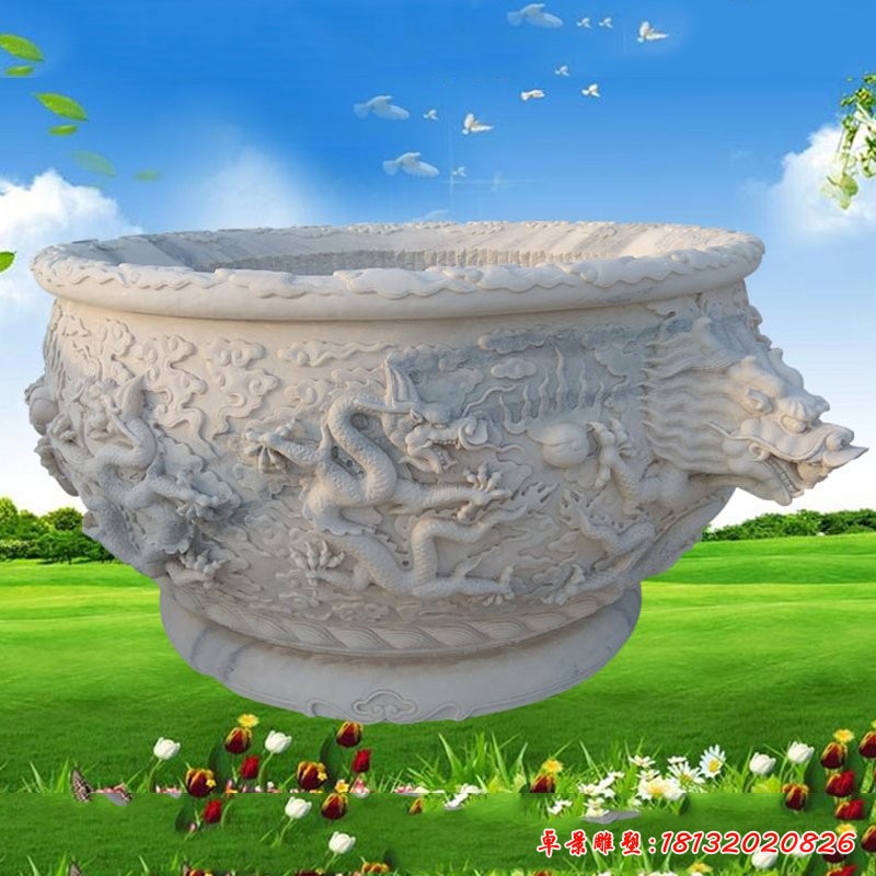 漢白玉水缸石雕