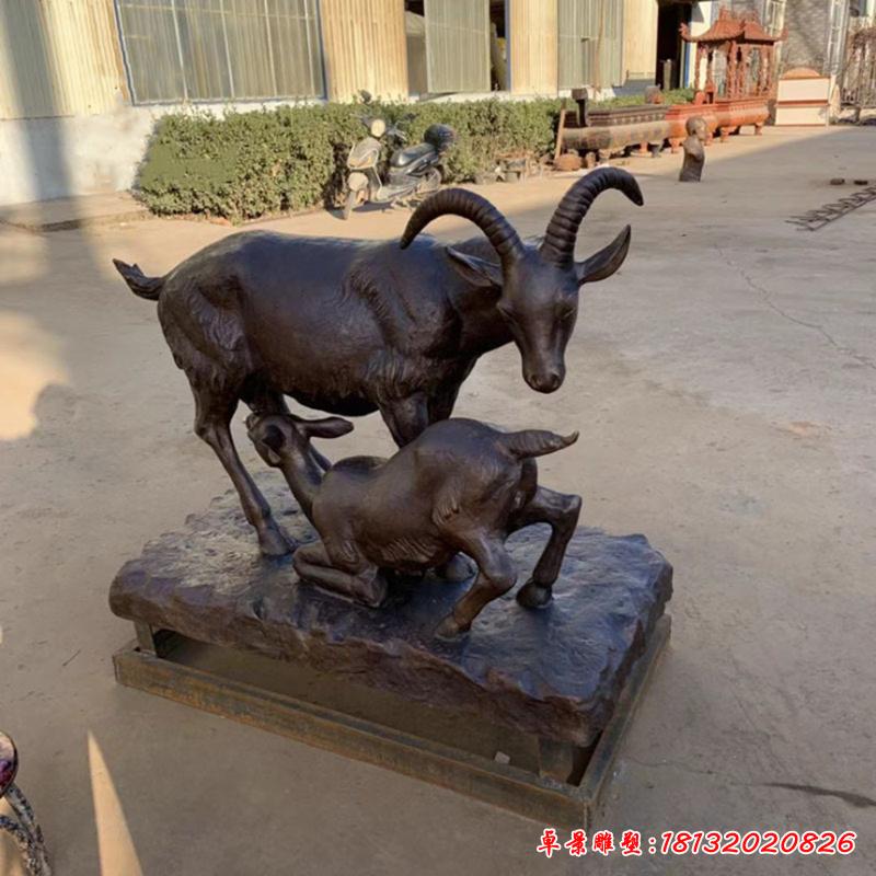 羊在古代與祥相通,祥也可寫作吉羊,表示吉祥之意,羊是祥瑞的象征。古人年初在門上懸羊頭,交往中送羊,以羊作聘禮,都是取其吉祥之意。因而銅雕山羊寓意吉祥。在古人的觀念里,羊是美善的象征。《詩經》中有一手首篇名為羔羊的詩,用羔羊比喻品德高尚的卿大夫。《說文》有美與善同義之說。羔羊似乎懂得母親的艱辛與不易,所以吃奶時是跪著的。羔羊的跪乳被人們賦予了至孝和知禮的意義。《春秋繁露》云:羔食于其母,必跪而受之,類知禮者。