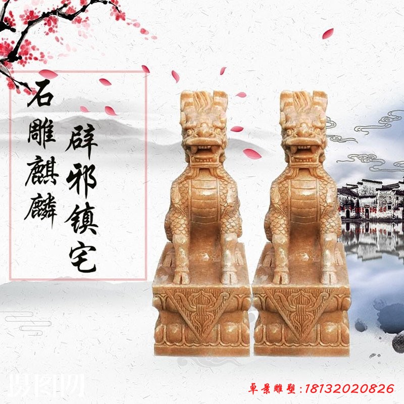 麒麟是一種古代傳說的動物,外形比較想像鹿頭上有獨角,并且麒麟全是都是具有鱗甲鱗片的尾巴像牛尾巴。麒麟在中國古文化上面是有著重大意義的,當時影響了整個社會傳統(tǒng)民俗的一個文化,比如麒麟送子這就是當時中國古代的生育崇拜之一,麒麟比較長壽并且比較慈祥不容易發(fā)火所以顯得麒麟比較仁慈,麒麟是龍的子女之一,所以在當時古代的背景下,走獸都是以麒麟為王的。麒麟在古代被叫做四靈獸,和鳳神、龍神、龜神合成四靈獸,其中麒麟是四靈獸,具有催財升官,吉祥如意的意思,因此人們非常的喜歡在家中或者公司擺放石雕麒麟,具有裝飾性作用,也有催財升官的作用。