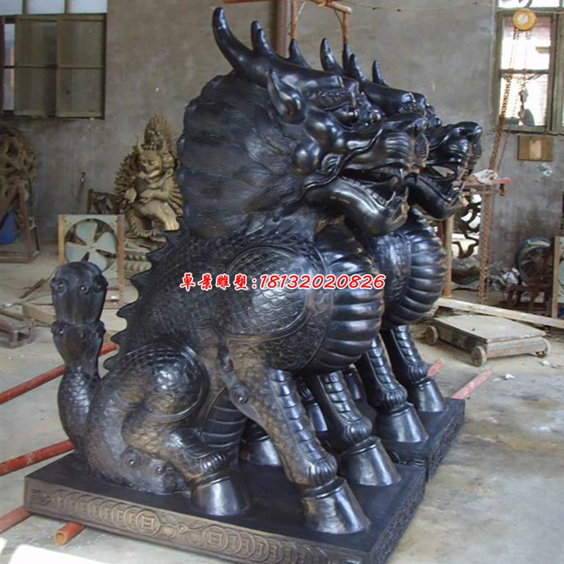 麒麟是古代傳說中的仁獸、瑞獸,是中國古代傳說中的一種動物,與獨角獸、白矖、騰蛇共稱為上古四大神獸,古時有麒麟送子的傳說,麒麟是我國的圣獸,是我國的吉祥物,麒麟主和平,有麒麟的地方代表著和平,富貴,風調雨順。銅雕麒麟,是一種從古代流傳下來的傳承接地的工藝技術,其本身就具有一定的傳奇色彩。傳說,銅雕麒麟是上古時期的圣獸,有祥瑞之意。