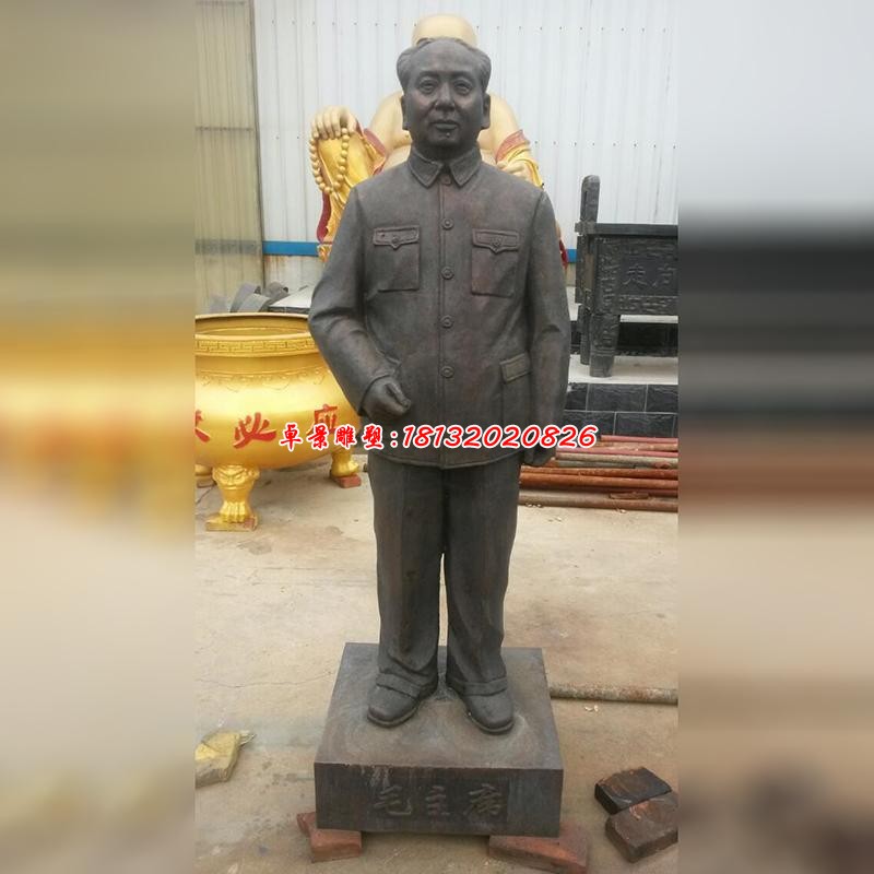 毛主席的第一個銅像是坐落于韶山,毛主席銅像重3.7噸,像高6米,基座高4.1米,通高10.1米,象征著10.1國慶,更象征著毛澤東是新中國的締造者。銅像面朝東南方,身著中山裝,左胸前掛著主席證,手執文稿,目光炯炯,面帶微笑,正視前方,巍然挺立,成功地再現了人民領袖毛澤東出席開國大典時的風采。