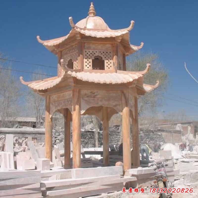 晚霞紅涼亭石雕