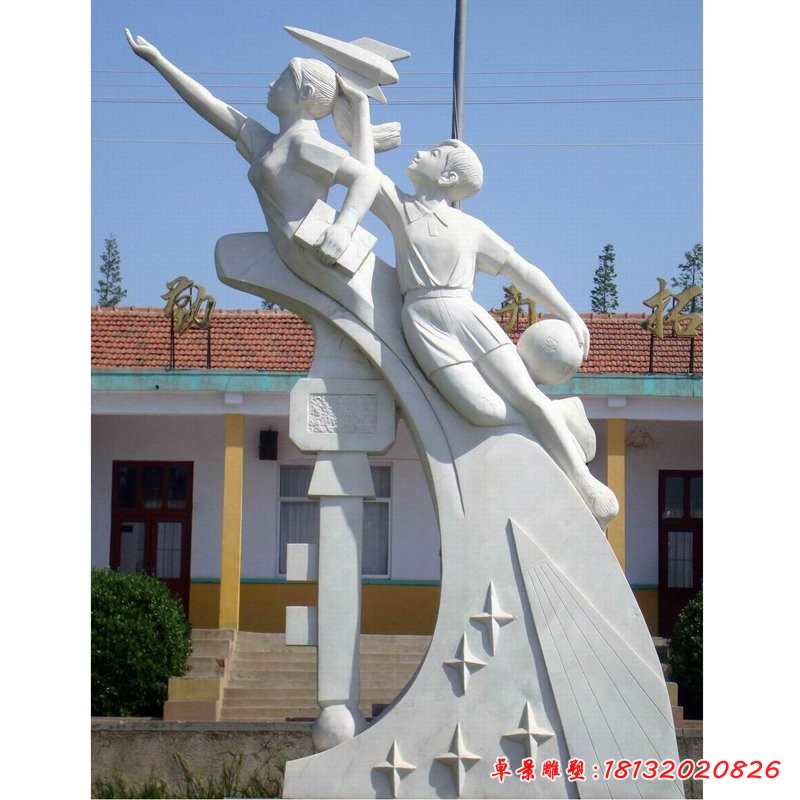 學(xué)校石頭雕塑是學(xué)校文化中的重要組成部分,能夠裝飾、豐富和美化學(xué)校環(huán)境空間,豐富師生的精神生活,同時(shí)學(xué)校石頭雕塑還是一個(gè)時(shí)代文化狀態(tài)的集中體現(xiàn)。學(xué)校石頭雕塑大都運(yùn)用抽象與象征、隱喻和悖論的手法表現(xiàn),特別是我國的學(xué)校石頭雕塑,一般具有激勵性、紀(jì)念性、裝飾性象征性等特點(diǎn),突出重視德育、思想審美潛化,或著重表現(xiàn)人類的智慧和對真善美永恒的追求。