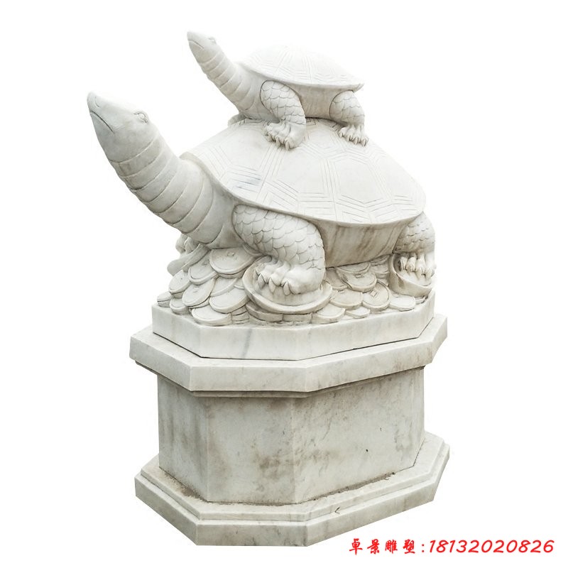 中國古代認為麒麟、鳳凰、龜和龍是有靈性的動物,而現在有許多多的石雕工藝品也粉粉的鼓吹他們,因此,把它們稱為四靈,龜在四靈中是惟—存在的動物,也是動物中壽命最長的。人們不僅把龜當成健康長壽的象征,還認為它具有預知未來的靈性。在古代,每當舉行重大活動之前,巫師都要燒龜甲,然后根據龜甲上爆裂的紋路來占卜吉兇。所以,人們稱龜為“神龜”、“靈龜”。神龜在中國曾經受到過極大的尊敬,在古代帝王的皇宮、宅院和陵墓里,都有石雕烏龜,用來象征國運的久遠。