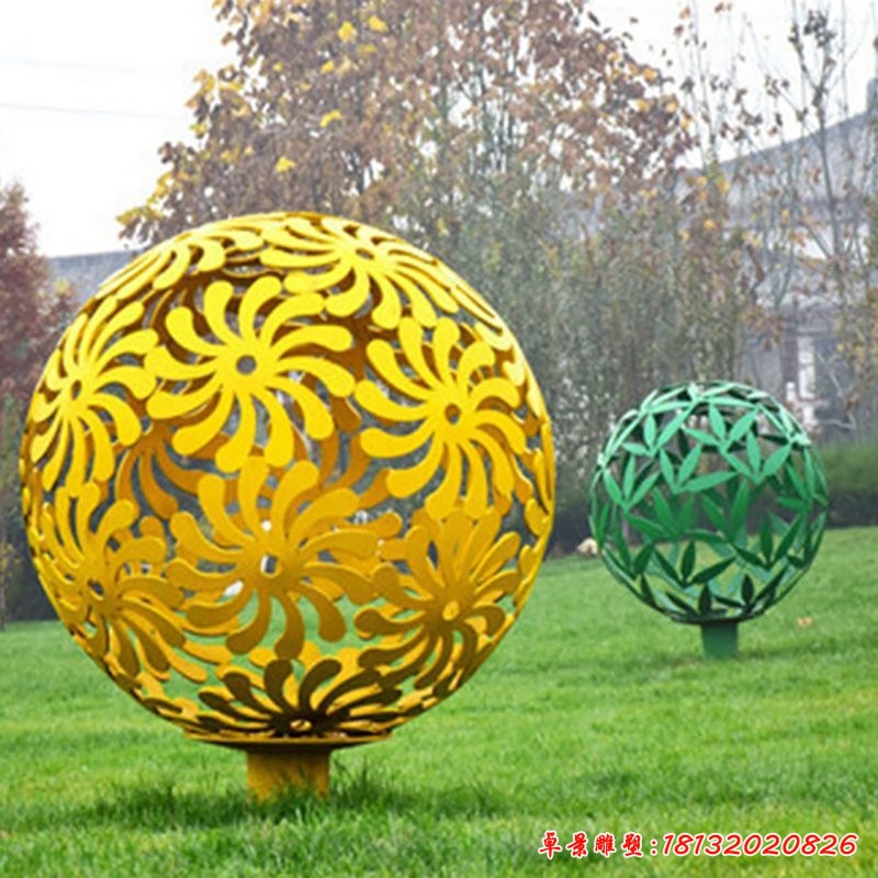 現(xiàn)代不銹鋼鏤空球景觀雕塑在生產和創(chuàng)造的時候,也會大大的提升環(huán)境空間的藝術氛圍和品位。藝術景觀雕塑塑在設計的過程中直接決定雕塑的價值和傳播的力量,這樣給市民帶來不同的感悟和心靈的升華。